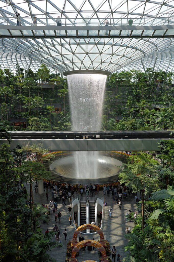 着いて驚いたのはチャンギ空港のスケールの大きさ。以前からアジアNo.1の空港でしたが、ジュエルなんて大きな滝が空港ターミナル内にできていて、これが既に観光スポットになっています。
