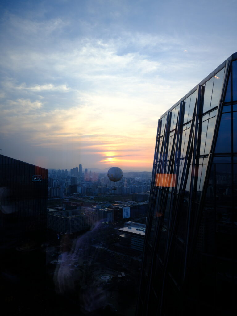 大阪からたった二時間で着いちゃうってソウルはホントに近い。さして疲れもせず、ホテルにチェックインして、ラウンジで一服。そこで撮れたソウルの夕陽に大満足。どうってことないスナップなんですが、それでもAPS-CのX100Vと比べれば暗部の耐性が段違いなのは一目でわかります。さすが中判、さすがGFX。
