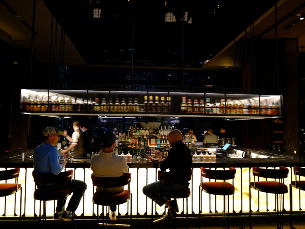 コントラストの高いシチュエーションでも懐の深さを感じさせます。カッコイイよね、このバー。このカメラ、都会の夜に大活躍するタイプ。