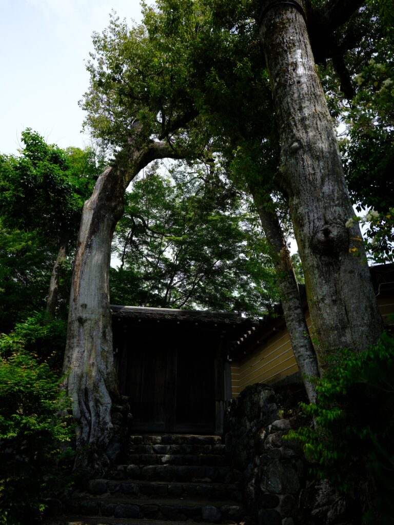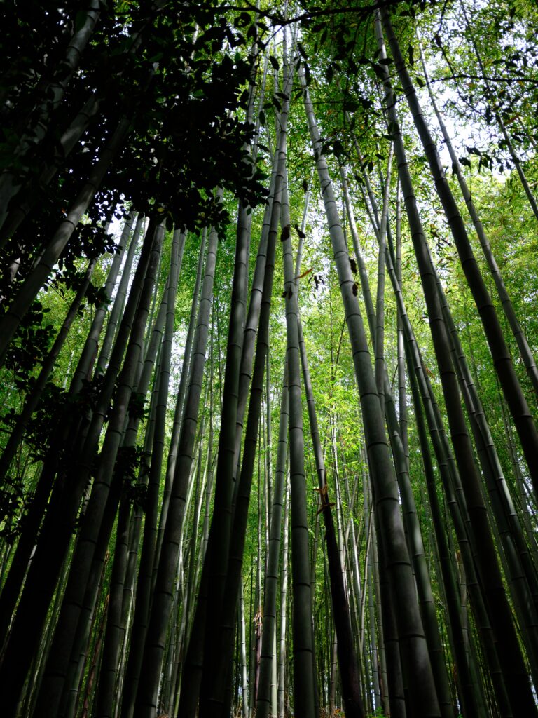 目指す祇王寺は京都の嵐山をやや北西に歩いたところにあります。必然的に観光客で溢れる嵐山を突っ切ることになるのですが、この混雑ぶりが想像以上にヤバい…。ここは渋谷か、と…。一応混雑を想定して午前中に着くように向かったのですが、現地到着10:30では早いとは言えない時間帯だったようです。インバウンドの皆さんと修学旅行生で歩道は溢れんばかり。竹林の小径を進むのにひと苦労。人を入れずに写真を撮ろうと思えば見上げるしかありません。しかしやはり新緑のこの季節に見る竹林はみずみずしく生命力にあふれ、えも言われぬオーラを感じます。杜は生きているのですね