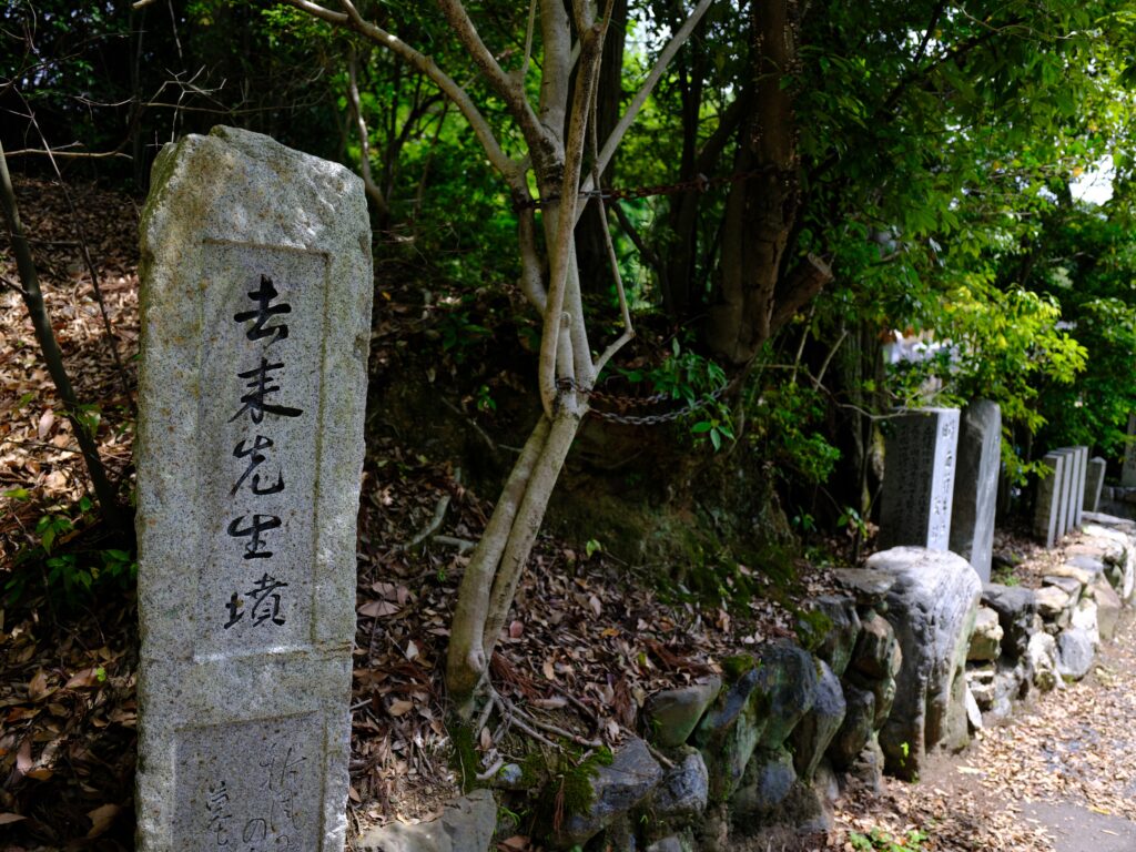 日本中どこにでも新緑の美しさは見ることができると思いますが、歩いている間に目にする伝統的な名所旧跡の数が違います。こちらは落柿舎前の去来先生の墓。悔しいですが、やっぱり京都は凄い
