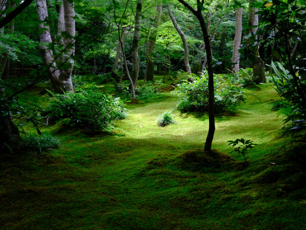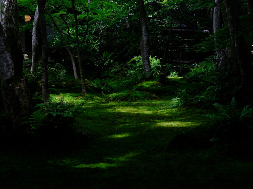 草庵前に拡がるメインのお庭。決して広くはないんですが、木漏れ日が光の道を形作る様が絵画のようでえも言われぬ雰囲気を醸しています。時間を忘れて眺めてしまう没我の境地。ここから祇王寺の庭園から草庵の写真をお楽しみください