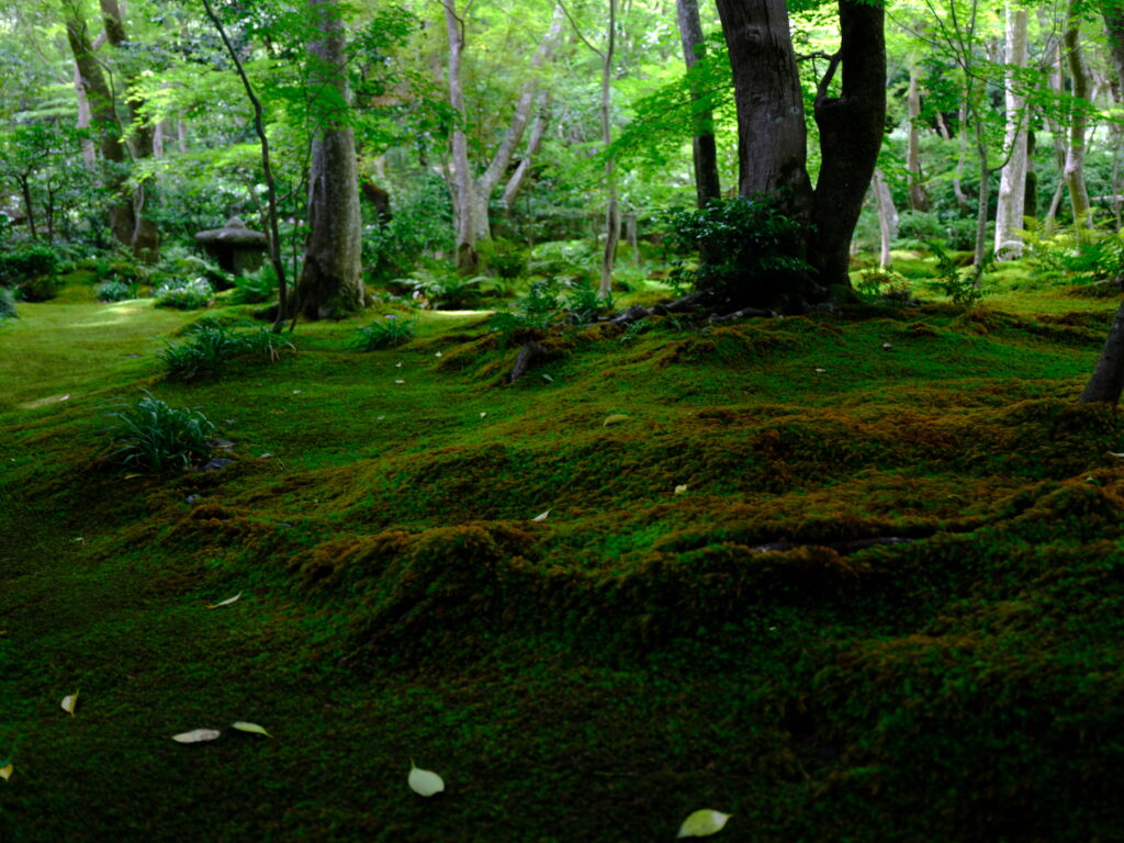 敷地に入ってすぐ脇に苔ゾーンがあり、夢中でシャッターを切ります。中判の解像力凄い